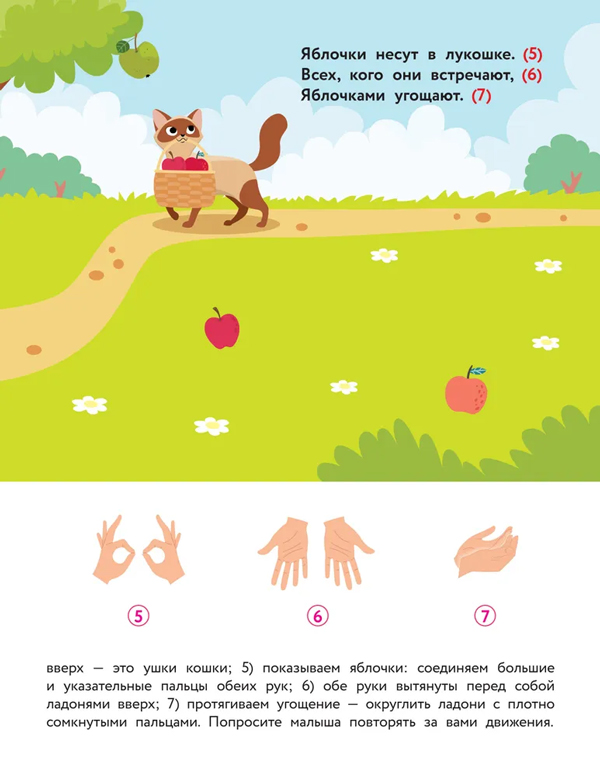 Как помочь ребёнку начать произносить первые слова и разговориться? Предложите ему послушать весёлые потешки — для каждой строчки подобраны пальчиковые игры. Малыш будет с удовольствием повторять различные движения, которые видит на картинках, — так в игре активизируются речевые центры мозга, повышается эмоциональная устойчивость, развиваются слуховое восприятие, зрительно-моторная координация, внимание, память. В книге 60 крупных стикеров с хорошей печатью: легко отделяются от основы и идеально подойдут для детских пальчиков. Малыш под стишок пальчиками покажет, как сорока-белобока варит кашу, — игра доставляет ему удовольствие и радость, а эти чувства являются сильнейшим средством, стимулирующим детскую фантазию, творческую инициативу и активное восприятие речи.