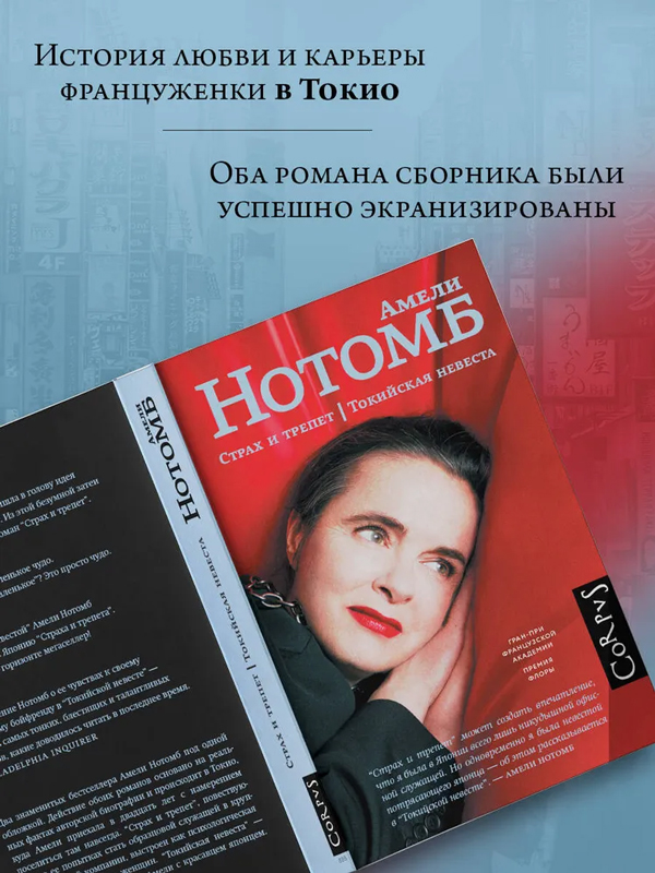 “Страх и трепет” — увлекательнейший и остроумный роман о ее попытках стать образцовой служащей в крупной японской компании. Выстроенный как психологическая дуэль двух красивых женщин, он принес молодой писательнице Гран-при Французской академии. “Токийская невеста” — история любви все той же Амели с красавцем японцем, едва не увенчавшаяся свадьбой.