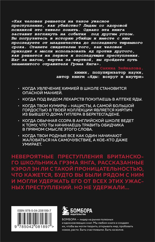 Летом 1962 года четырнадцатилетнего Грэма обвинили в отравлении школьного друга и членов семьи, которые он осуществлял, добавляя сурьму в школьные ланчи, воскресное жаркое и утренние чашки чая. Суд над Грэмом, у которого диагностировали множественное расстройство личности, привел к его задержанию в Бродмуре, где он был самым молодым пациентом. Но самый большой вред Грэм причинил после освобождения из Бродмура. Найдя работу в фирме по производству фототоваров, он готовил чай и кофе для своих коллег. И очень скоро у многих сотрудников начались ужасные боли в желудке...