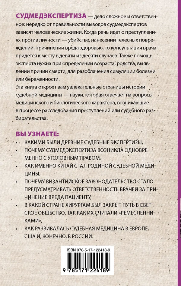 Эта книга откроет вам увлекательные страницы истории судебной медицины — науки, которая отвечает на вопросы медицинского и биологического характера, возникающие в процессе расследования преступлений или судебного разбирательства.