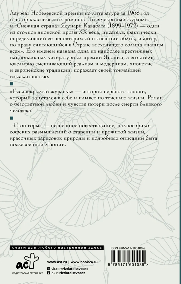 "Тысячекрылый журавль" — история нервного юноши, который запутался в себе и плывет по течению жизни. Роман о безответной любви и чувстве потери после смерти близкого человека.