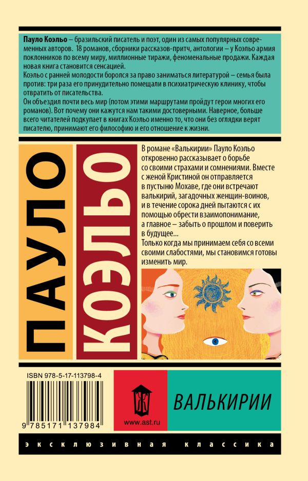 В романе "Валькирии" Пауло Коэльо откровенно рассказывает о борьбе со своими страхами и сомнениями. Вместе с женой Кристиной он отправляется в пустыню Мохаве, где они встречают валькирий, загадочных женщин-воинов, и в течение сорока дней пытаются с их помощью обрести взаимопонимание, а главное забыть о прошлом и поверить в будущее.