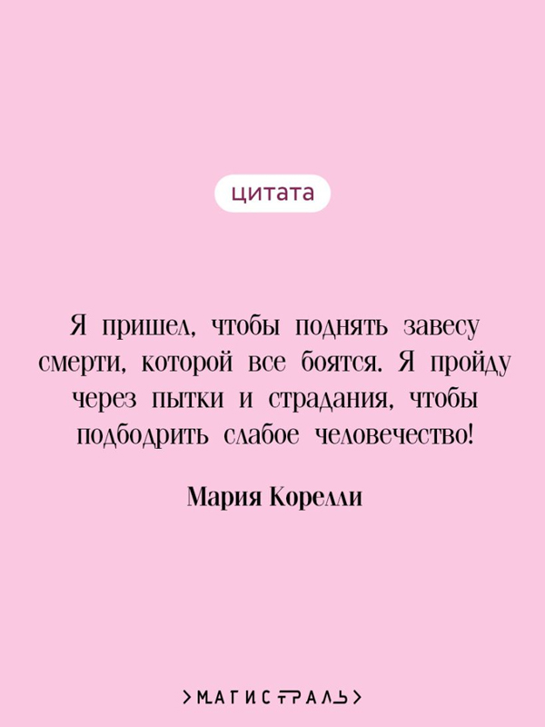 Мария Корелли (1855—1924) один из самых продаваемых британских писателей поздней Викторианской и Эдвардианской эпох. Успех Корелли был огромным, настолько, что она была единственным писателем, приглашенным на коронацию Эдуарда VII.