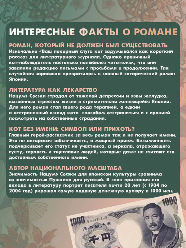 Роман Сосэки Нацумэ – это блестящая сатира на человеческие слабости и пороки, ставший шедевром японской литературы.