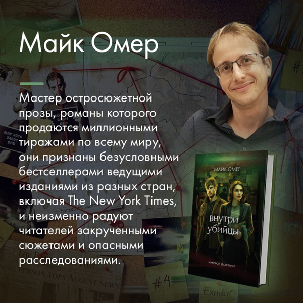«Сериал “Внутри убийцы” – первая киноадаптация романа, и я рад, что ее сняли в России, где живет много моих читателей. Это невероятно удивительно – видеть, как родившиеся в моей голове истории и персонажи материализуются на экране. Эти персонажи органично живут и в Чикаго, как это было в книге, и в Петербурге, как в сериале». – Майк Омер