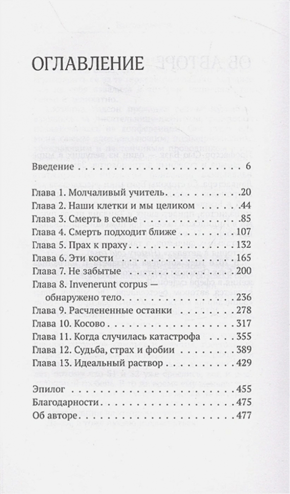 Рождение и смерть – две константы нашей жизни, которых никому пока не удалось избежать. Однако со смертью мы предпочитаем сталкиваться пореже, раз уж у нас есть такая возможность. Что же заставило автора выбрать профессию, неразрывно связанную с ней? Профессор Сью Блэк, патологоанатом и судебный антрополог, занимается исследованиями человеческих останков в юридических и научных целях. По фрагментам скелета она может установить пол, расу, возраст и многие другие отличительные особенности их владельца. Порой эти сведения решают исход судебного процесса, порой – помогают разобраться в исторических событиях значительной давности.