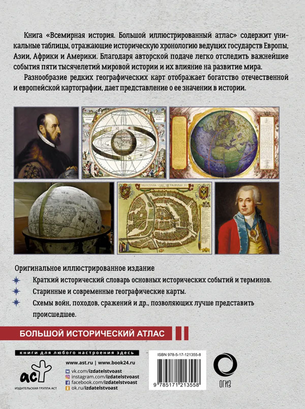 Большой иллюстрированный атлас содержит уникальные линейные таблицы, отражающие историческую хронологию ведущих государств Европы, Азии, Африки и Америки. Благодаря авторской подаче легко отследить важнейшие события пяти тысячелетий мировой истории и их влияние на развитие мира.