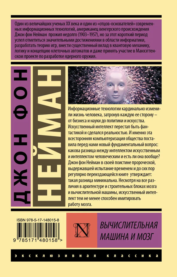 Джон фон Нейман, в своей поистине пророческой, выдержавшей испытание временем и до сих пор регулярно переиздающейся книге, утверждает: такая разница минимальна. Несмотря на все различия в архитектуре и строительных блоках мозга и вычислительной машины, искусственный интеллект, тем не менее, способен имитировать работу мозга.