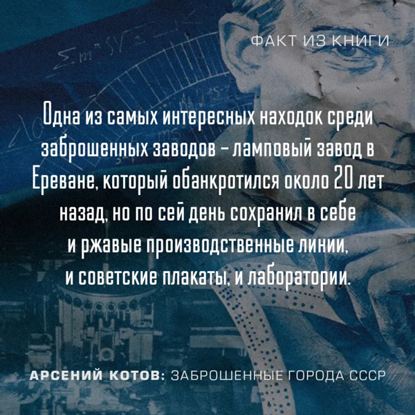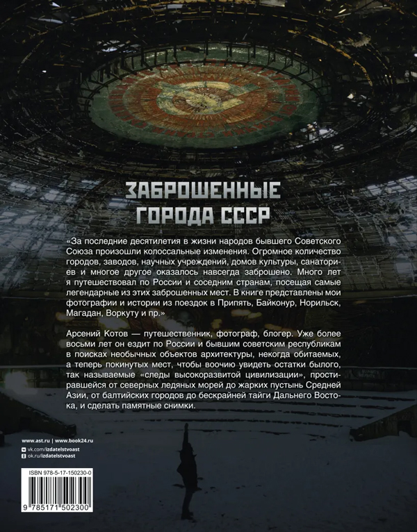 В книге Арсения Котова «Заброшенные города СССР» вы увидите самые легендарные заброшенные места России и постсоветского пространства и познакомитесь с интересными историями из путешествий по Припяти, Байконуру, Норильску, Магадану, Воркуте и многим другим городам.