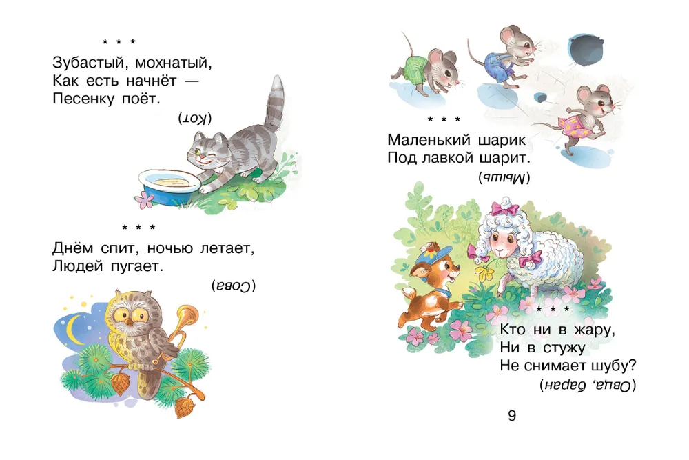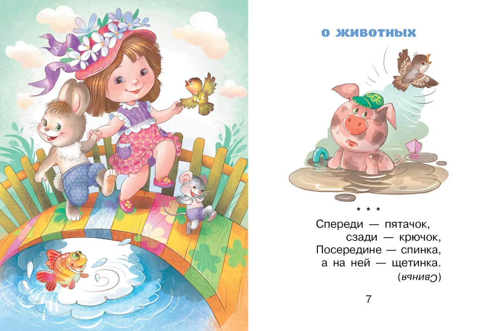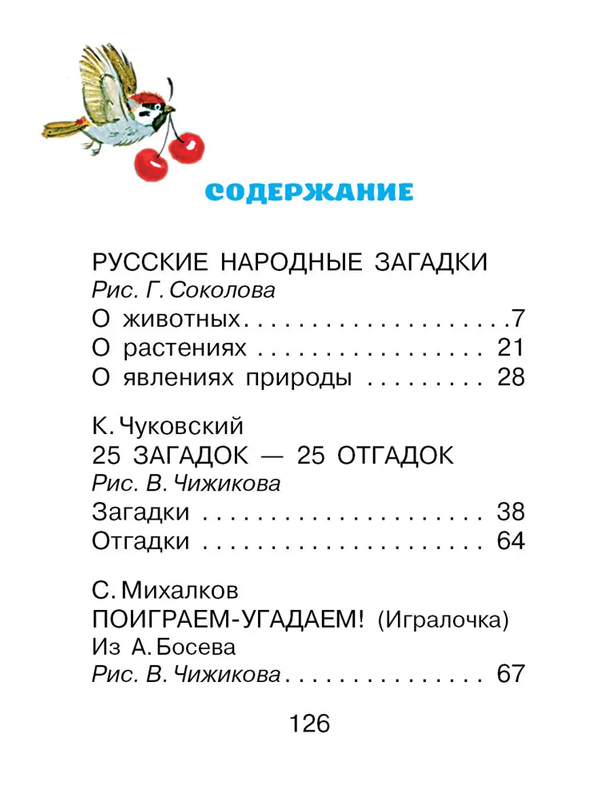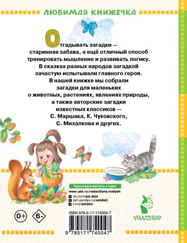 В нашу книгу вошли загадки русские народные, а так же авторские: С. Маршака, С. Михалкова, К. Чуковского, Е. Каргановой и М. Дружининой.