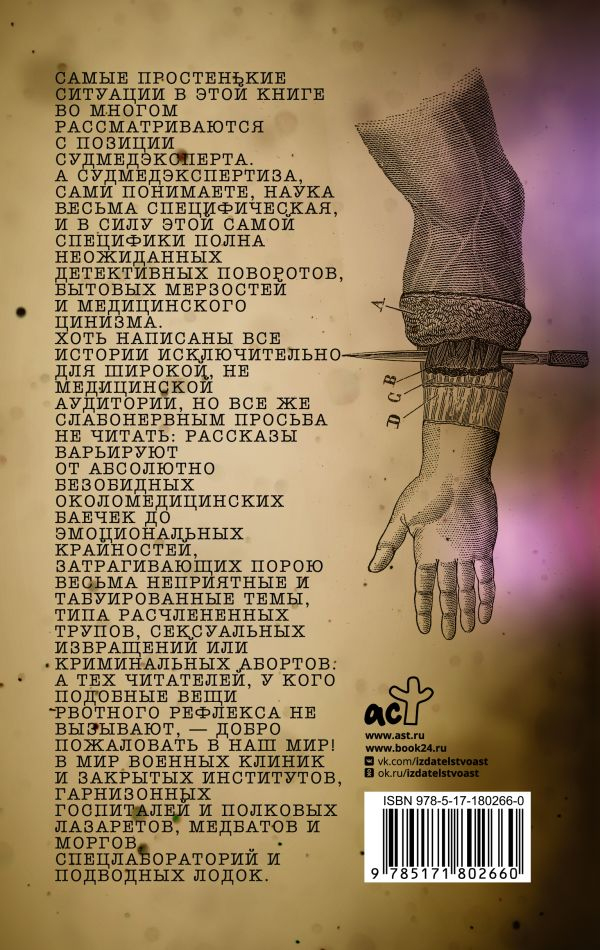 А тем читателям, у кого подобные вещи рвотного рефлекса не вызывают — добро пожаловать в наш мир! В мир военных клиник и закрытых институтов, гарнизонных госпиталей и полковых лазаретов, медбатов и моргов, спецлабораторий и подводных лодок.