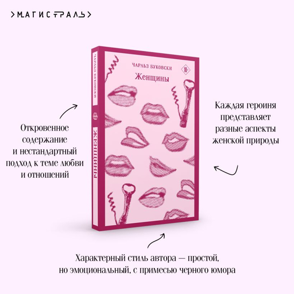Роман «Женщины» написан им на волне популярности и содержит массу фирменных «фишек» Буковски: самоиронию, обилие сексуальных сцен, динамику сюжета. Герою книги 50 лет, его зовут Генри Чинаски, и он является неизменным альтер-эго автора. Роман представляет собой череду более чем откровенных сексуальных сцен, которые объединены главным — бесконечной любовью героя к своим женщинам, любованием ими и грубовато-искренним восхищением.
