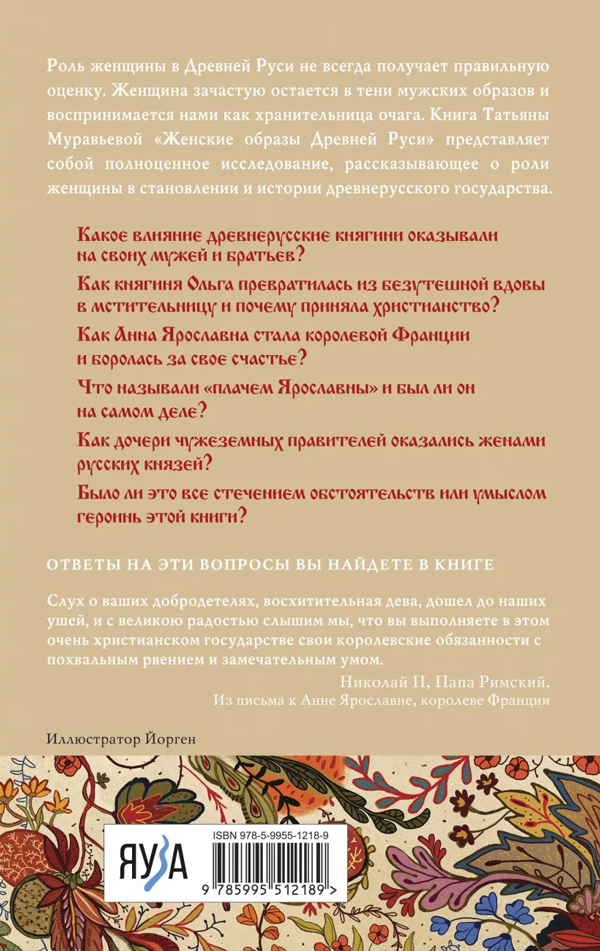 Роль женщины в Древней Руси не всегда получает правильную оценку. Женщина зачастую остается в тени мужских образов и воспринимается нами как хранительница очага. Книга Татьяны Муравьевой «Жены и девы Древней Руси» представляет собой полноценное исследование, рассказывающее о роли женщины в становлении и истории древнерусского государства.