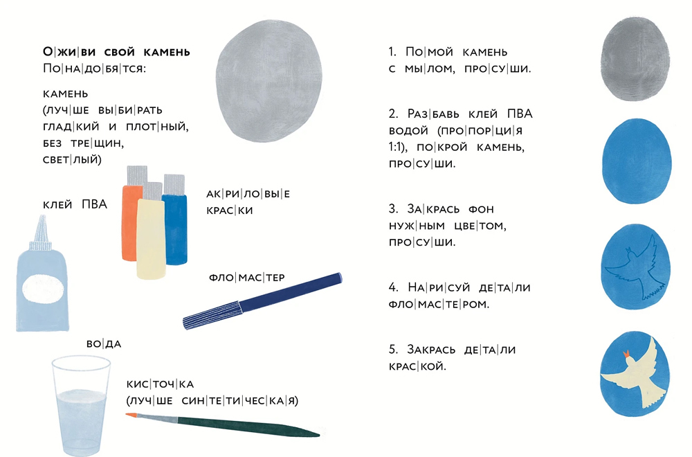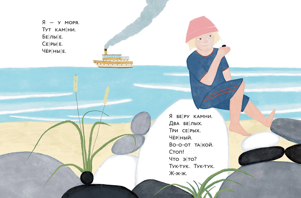 Что делать на море в мае, если нельзя купаться? Лежать скучно, играть не с кем, пляж пустой и безлюдный. Только песок и камни. Белые, серые, чёрные камни. Один похож на жука, другой — на голубя. А на кого похож этот большой серый камень? Это история о дружбе и безграничной детской фантазии.