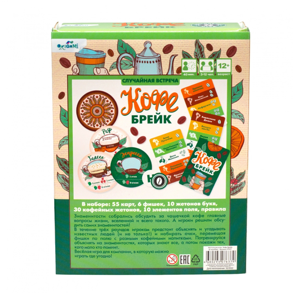 В течение трёх раундов игрокам предстоит объяснять и угадывать известных людей (и не только!) и набирать очки, перемещая фишки по полю с разными кофейными напитками. Потренируйся объяснять на знаменитостях, которых знают все, а потом покажи тех, кого мало кто помнит.